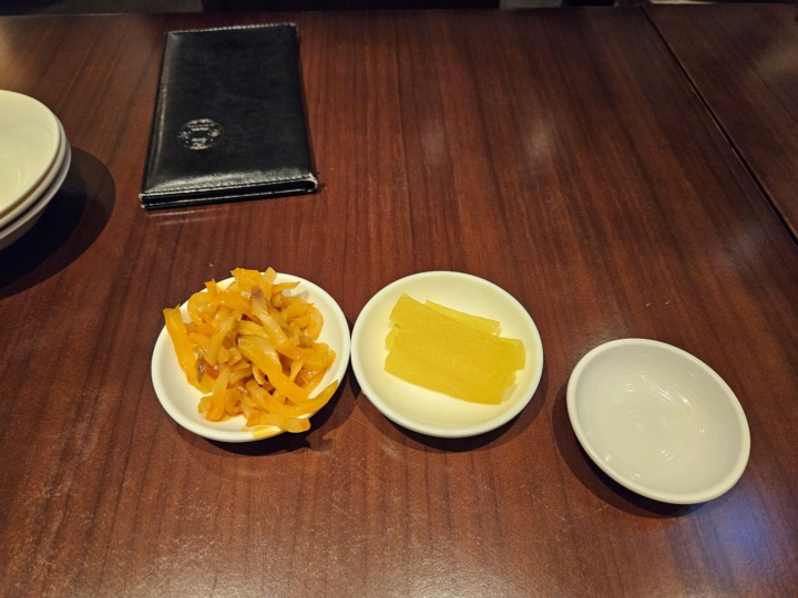 짜사이와 단무지, 앞접시 등이 세팅되고