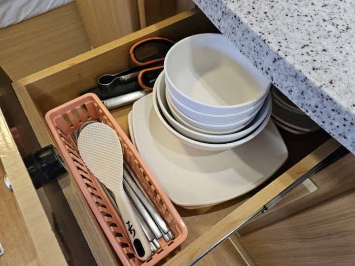접시, 그릇, 가위, 칼, 집게 등 모두 갖춰져 있다.