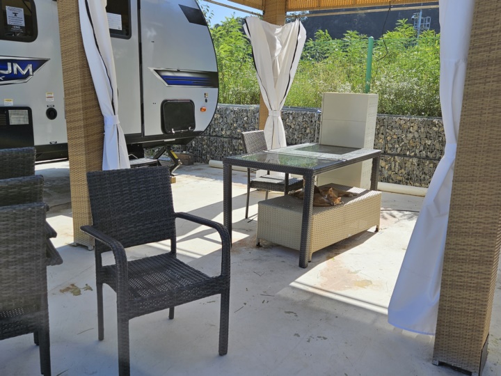 그새 직원분이 야외테이블 커튼도 묶어주시고