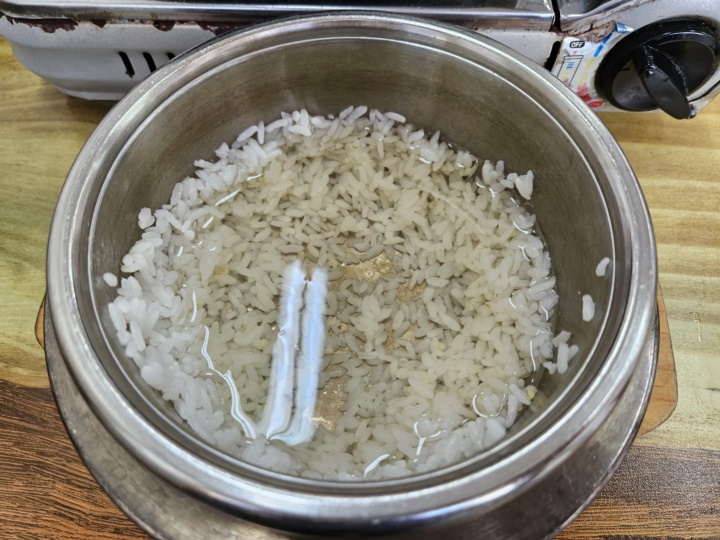 물 부어서 누룽밥 먹을 준비해 둔다.