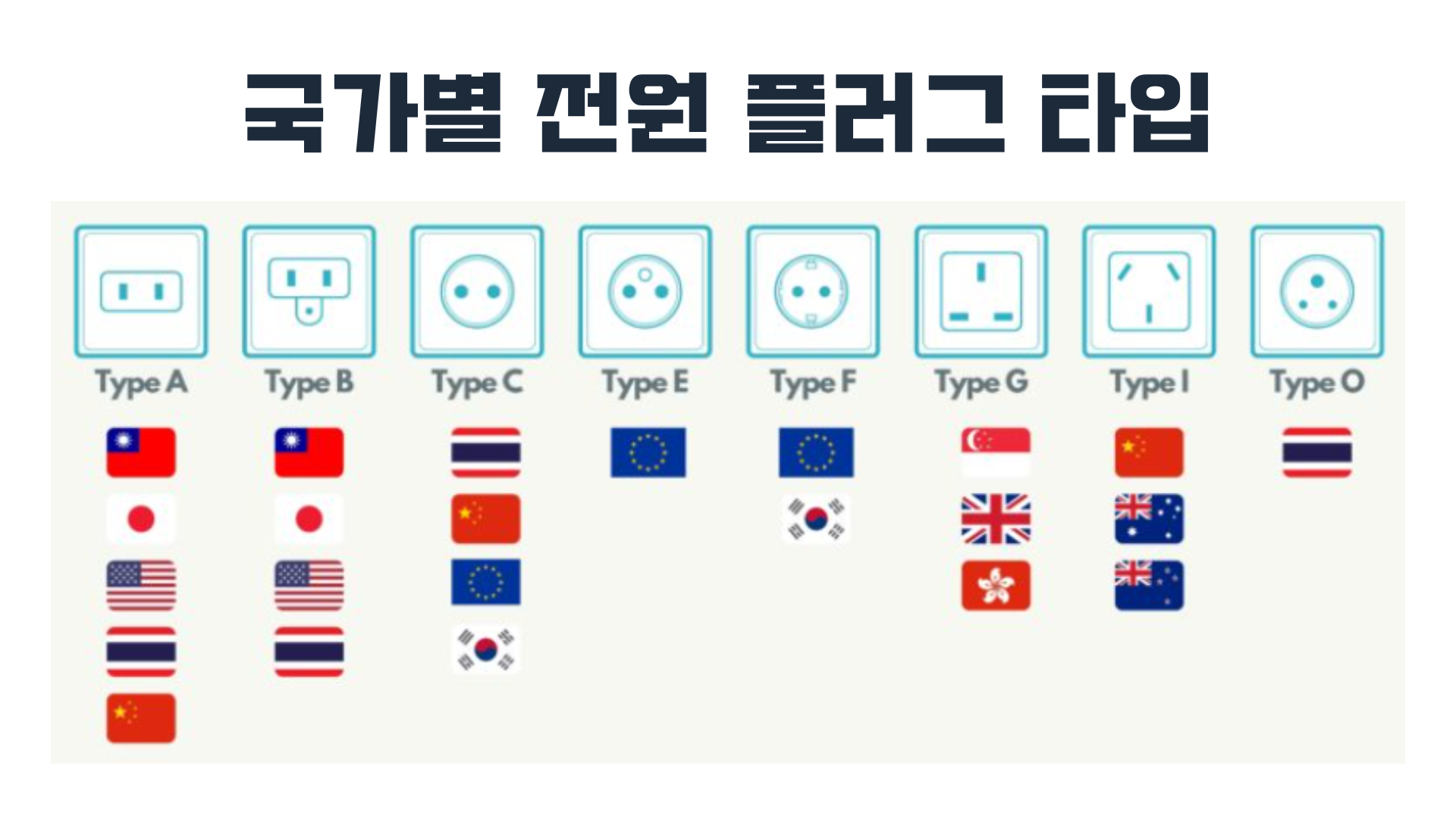 하지만, A형만 있는 곳도 간혹 있으므로 멀티 어댑터를 준비해가는 것도 좋다.