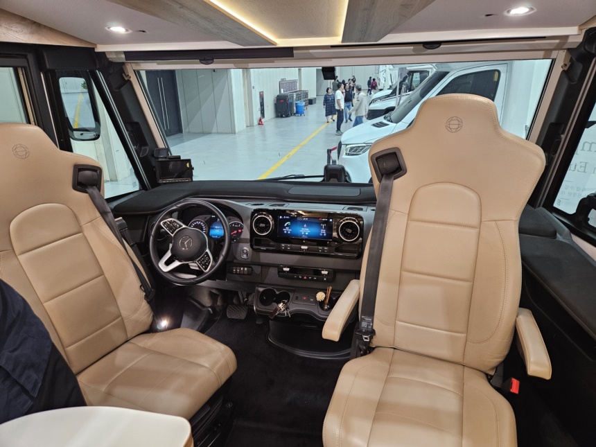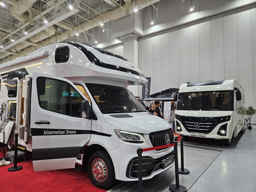 벤츠 르보야저는 고급형 캠핑카 모델로 최신 기술이 적용된 편의 기능과 고급스러운 디자인이 돋보였다.