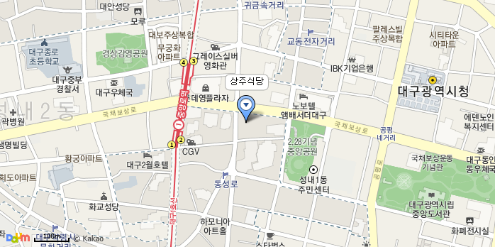 ▲상주식당(전화 :053-425-5924)은 대구 중구 국채보상로 598-1 (지번 동성로2가 54-1)에 위치하고 있다.