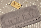 1인 1매 제공되는 갈색 타올 한쪽에는 백두산천지온천이라고, 반대쪽에는 사용후 돌려주세요(였나?)라고 씌어있다.
