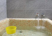 욕조 두 개에 온도를 달리해서 물을 받기 시작, 사이즈가 크지 않아서 금방 욕조를 채울 수 있다. 동래온천 수온이 60℃가 넘는다는데 온수밸브 열면 진짜 앗뜨앗뜨한 온수가 콸콸 쏟아진다.
