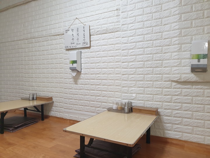 문숙 배우님이 앉아 있었던 창가쪽 테이블에 그대로 앉아 기념사진 한 장 찍어보고 싶었는데... 지금 그 자리엔 테이블 대신 냉장고가 놓여 있다. 입식 테이블쪽은 에어컨 바람 때문에 시원하지만, 굳이 신발을 벗고 좌식테이블 하나를 차지했다. 월요일이고 아침도 점심도 아닌 애매한 시간대라 손님은 우리 가족 뿐이었다.