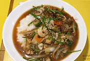 밑반찬은 배추김치와 된장 고추 장아찌 두 가지가 나온다. 고추 장아찌는 보기에는 순하게 생겼지만 상당히 짜고 맵기 때문에 한꺼번에 하나 다 먹으면 눈물 난다 ㅋㅋㅋ