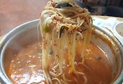 국물은 멸치육수, 원래 물국수 고명으로 시금치가 들어갔다고 하는데 이제 바뀐 건지 일시적으로 부추를 넣은 것인지는 알 수 없으나... 2020년 9월에는 부추에 참깨고명이 얹어져 나왔따. 개운한 국물에 양념을 잘 풀면 적당히 매콤하다. 면발은 땅콩국수랑 동일한 탱글한 쫄면같은 가락이라 역시 식감이 좋다.