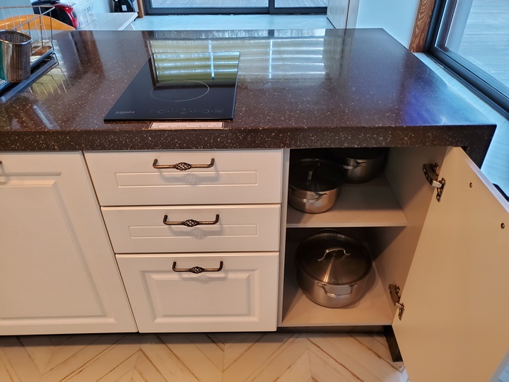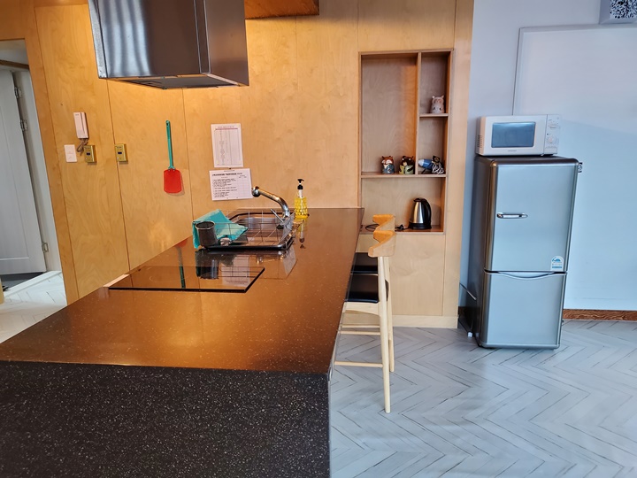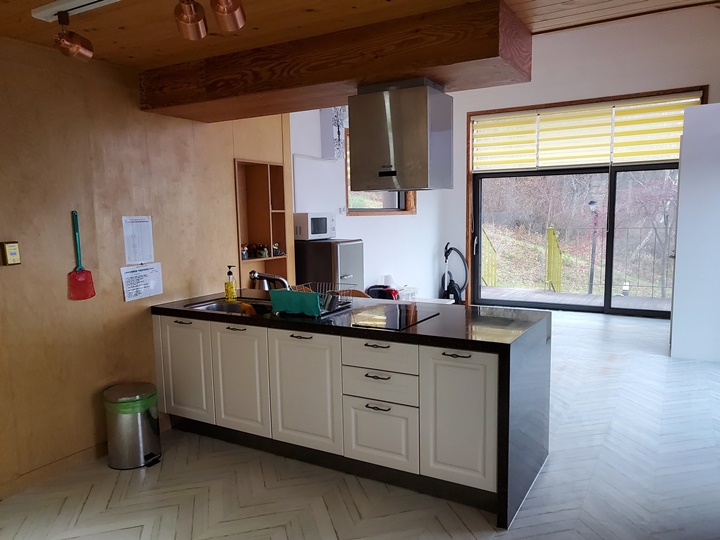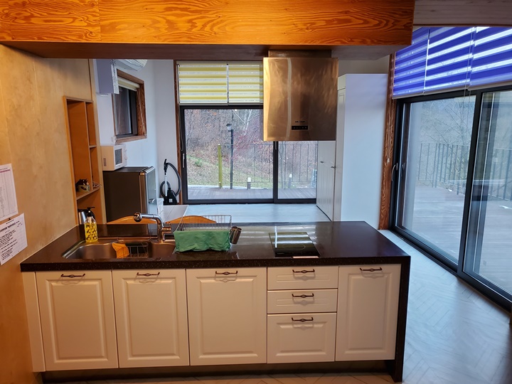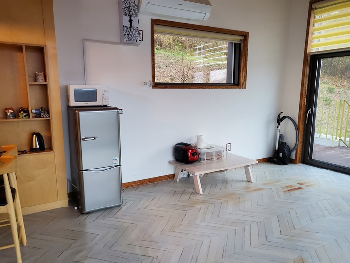 취사시설을 갖추고 있어서 먹을거리 준비해와서 직접 해먹어도 좋다. 냉장고, 전자레인지, 에어컨, 전기압력밥솥, 전기포트, 취사도구 모두 준비되어 있다.
