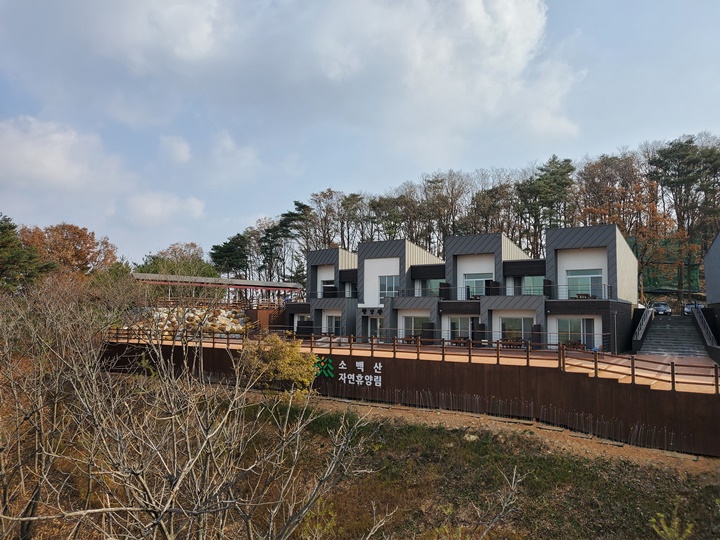 나오면서 소백산 자연휴양림도 잠깐 둘러보았는데, 여러 가족이 같이 올 때는 휴양관이나 숲 속의 집이 좋을 듯하다. 산림문화휴양관은 2동 2층으로 평강관 12실, 온달관 3실이며 숲 속의 집은 총 10동이다. 흔들 다리도 있는 전망대는 정감록 전망대보다 규모가 크며, 경치도 수려하다.