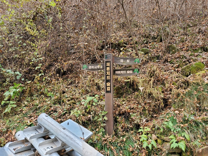 다음날 아침에는 피톤치드 숲길을 산책하려고 했는데, 비로 인해 유실되었는지 산책로가 돌무더기로 없어져 산책을 하지 못해 아쉬웠다. 원래라면 화전민촌을 한 바퀴 돌아오는 가벼운 코스로 50분 소요된다고 한다. 아침산책을 짧게 마치고 퇴실 준비를 한 다음 쓰레기를 처리하고 카드키를 반납했다.