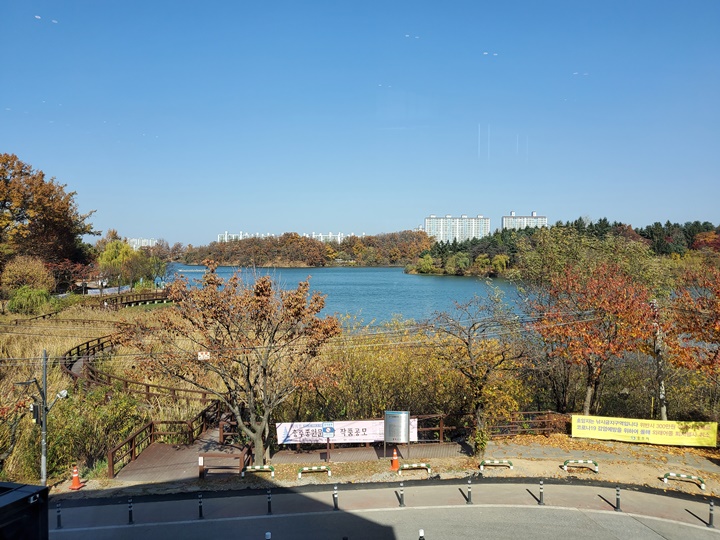남자화장실은 호암지 전망, 여자화장실은 주차장 전망쪽에 있다. 우리가 갔을 때는 호암지 전망쪽만 손님들이 있었지 다른 쪽은 거의 비어 있었다.