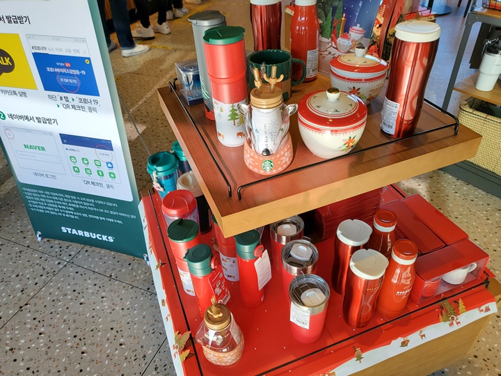 벌써 스타벅스에는 크리스마스 분위기가 물씬~ 크리스마스 굿즈와 2020 크리스마스 e-프리퀀시 2021 스타벅스 플래너와 폴더블 크로스백이 전시되어 있다. 얼른 프리퀀시 다 모아서 플래너로 바꾸고 싶다!