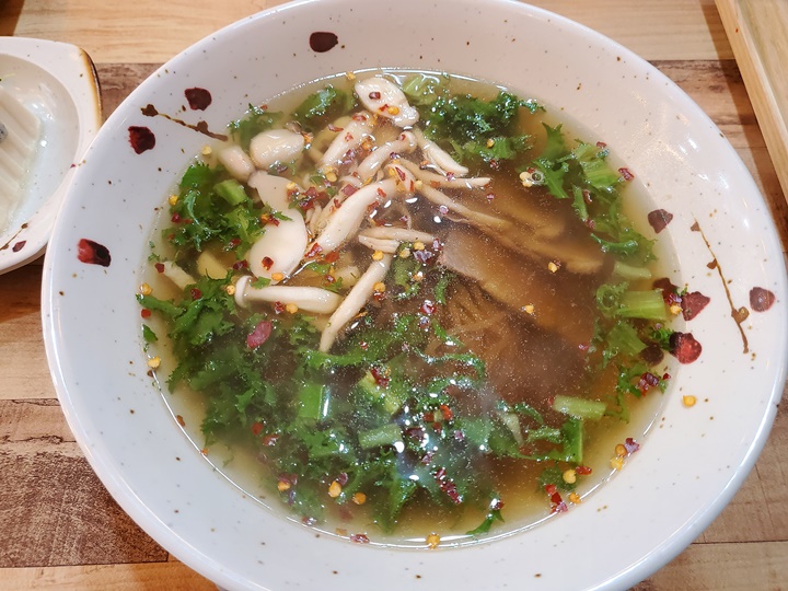 감칠맛 나는 소고기 육수도 일품이었지만 무엇보다 국수도 아닌 것이 쫄면도 아닌것이 식감이 독특한 면발에 깜짝 놀랐다. 국수보다는 탄성이 좋고, 쫄면보다는 부드러운 편으로 특유의 개성이 있다. 흑마늘 반죽이라고 해서 마늘향이 강할까 싶었지만, 알고 먹지 않는다면 거의 모를 정도?