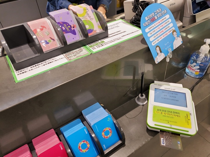 디자인은 셋 다 마음에 들지 않았지만 그 중 하나 골라 주는 사람, 받는 사람 모두 부담스럽지 않을 금액을 충전했다. 실물카드 충전은 현금/ 신용카드 결제 모두 가능했다.