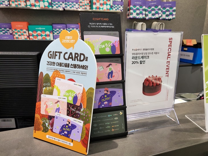 모처럼 명동에 다녀온 날, 올리브영이 보이길래 바로 들어가서 세일하는 마스크팩이랑 핸드크림 같은 거 구입한 다음 기프트카드도 구입했다. CJ GIFT CARD는 진열된 디자인이 이렇게 3종류, 시즌별로 가정의 달이나 연말에 알맞는 디자인이 남아 있다면 더 좋을 텐데... 그렇지 않아 아쉬웠다.