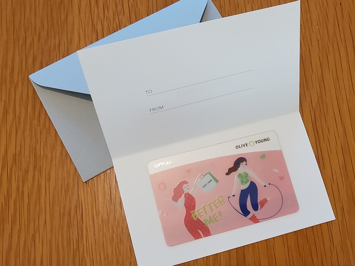 올리브영 기프트카드 실물카드 간단히 코멘트를 적을 수 있는 카드와 함께 봉투에 담아준다.