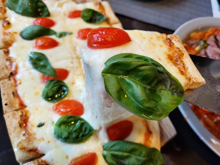 먹기 좋은 크기로 잘라져 나오고 적당한 도우, 토마토의 새콤함, 짭짤하고 탄력 있는 치즈의 맛이 조화롭다. 아이가 이거 자꾸 생각나는 맛이라며 찐 맛있었다고 그런다.
