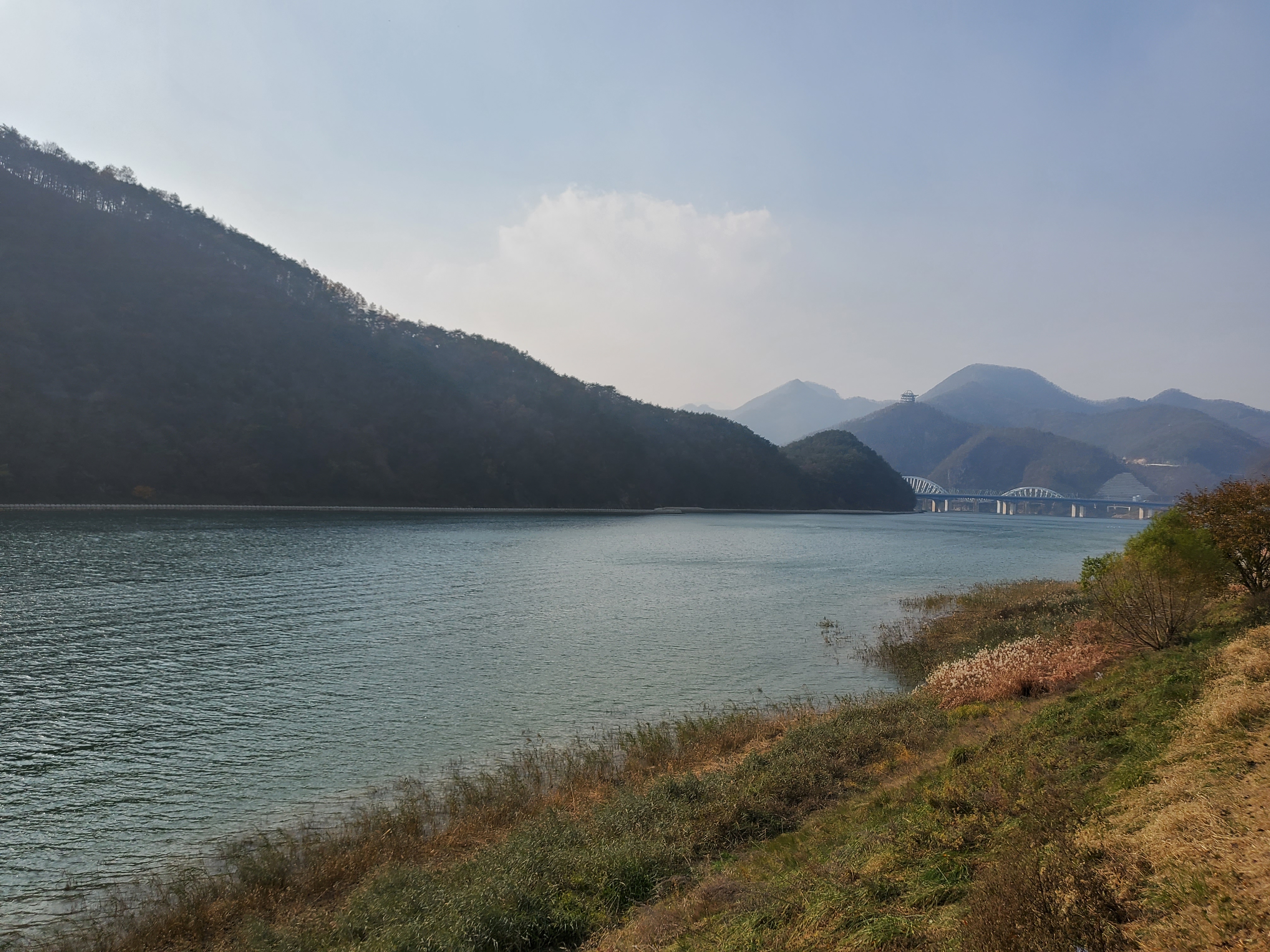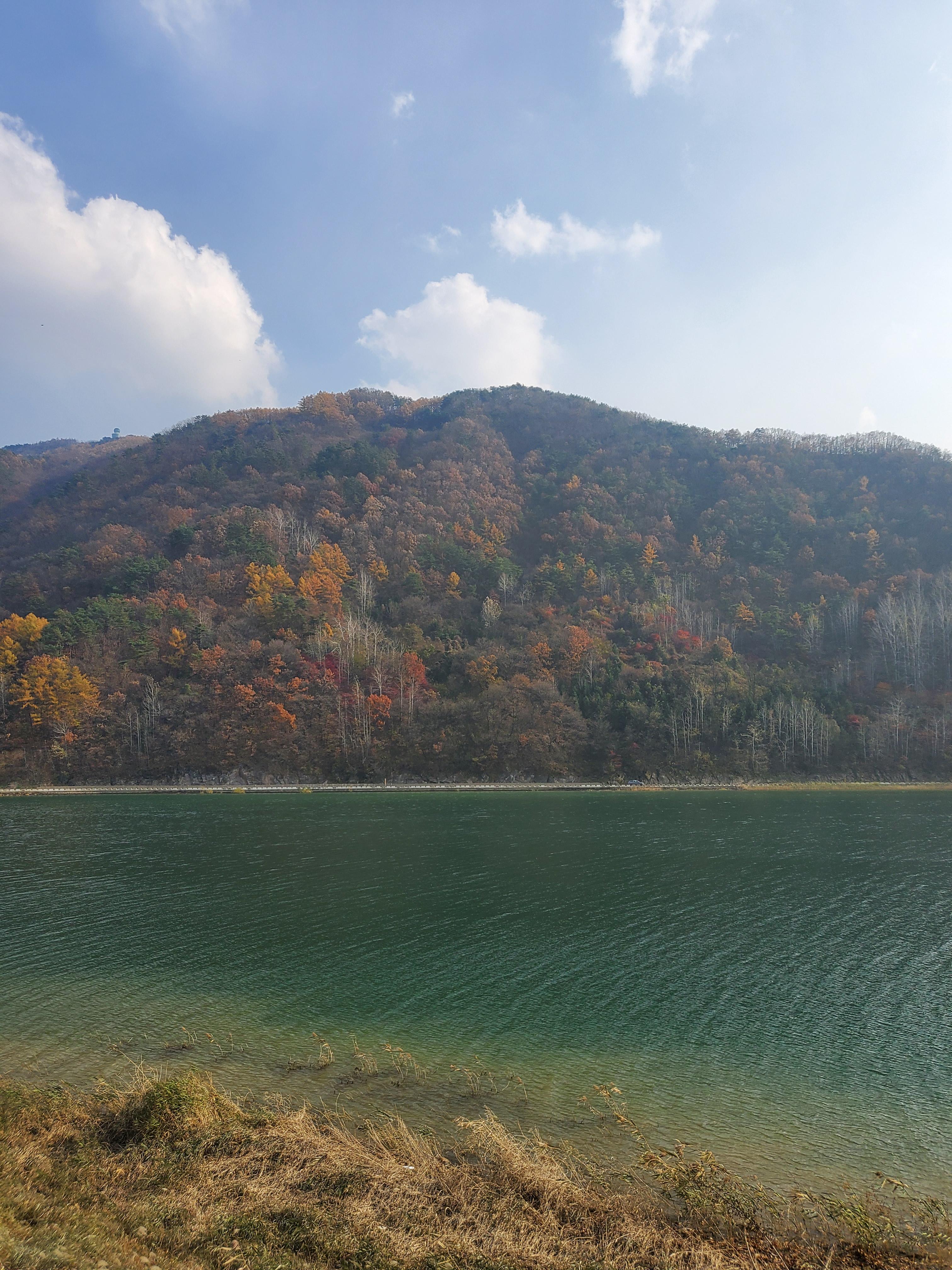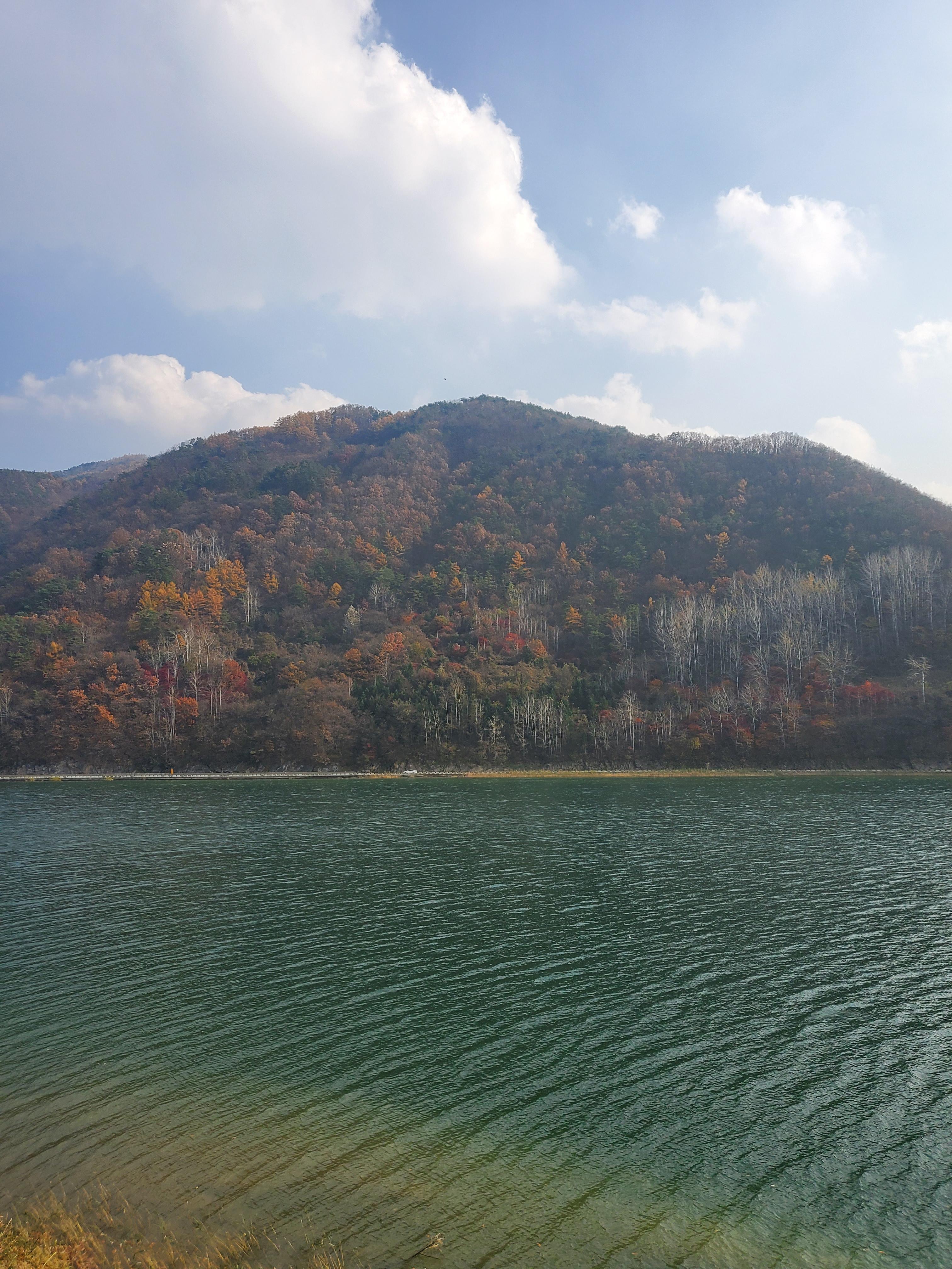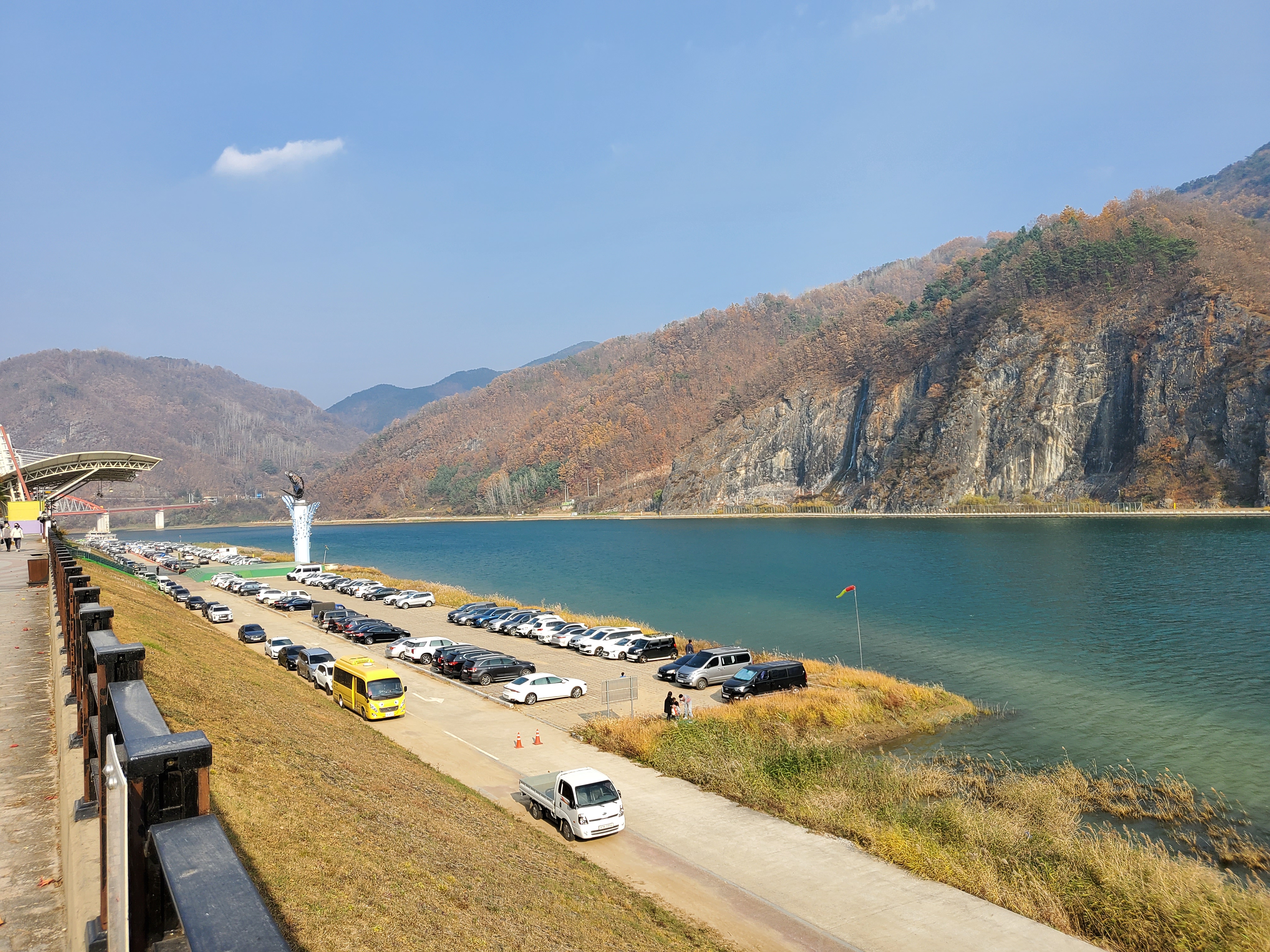 늑장을 부렸더니 길이 꽤 막혔다. 주차장까지 쭉 들어갔다가는 빼도 박도 못할 것 같아서 강변 주차장에 주차를 했다. 단양관광호텔 근처에서부터 강변에 쭈욱 주차장이 있는데 이쪽에 주차를 하면 30분 넘게 걸어야 한다. 풍경이 아름다워 단양 강변 산책을 할 겸 멀리에 주차를 하고 가을 강변을 만끽했다.
