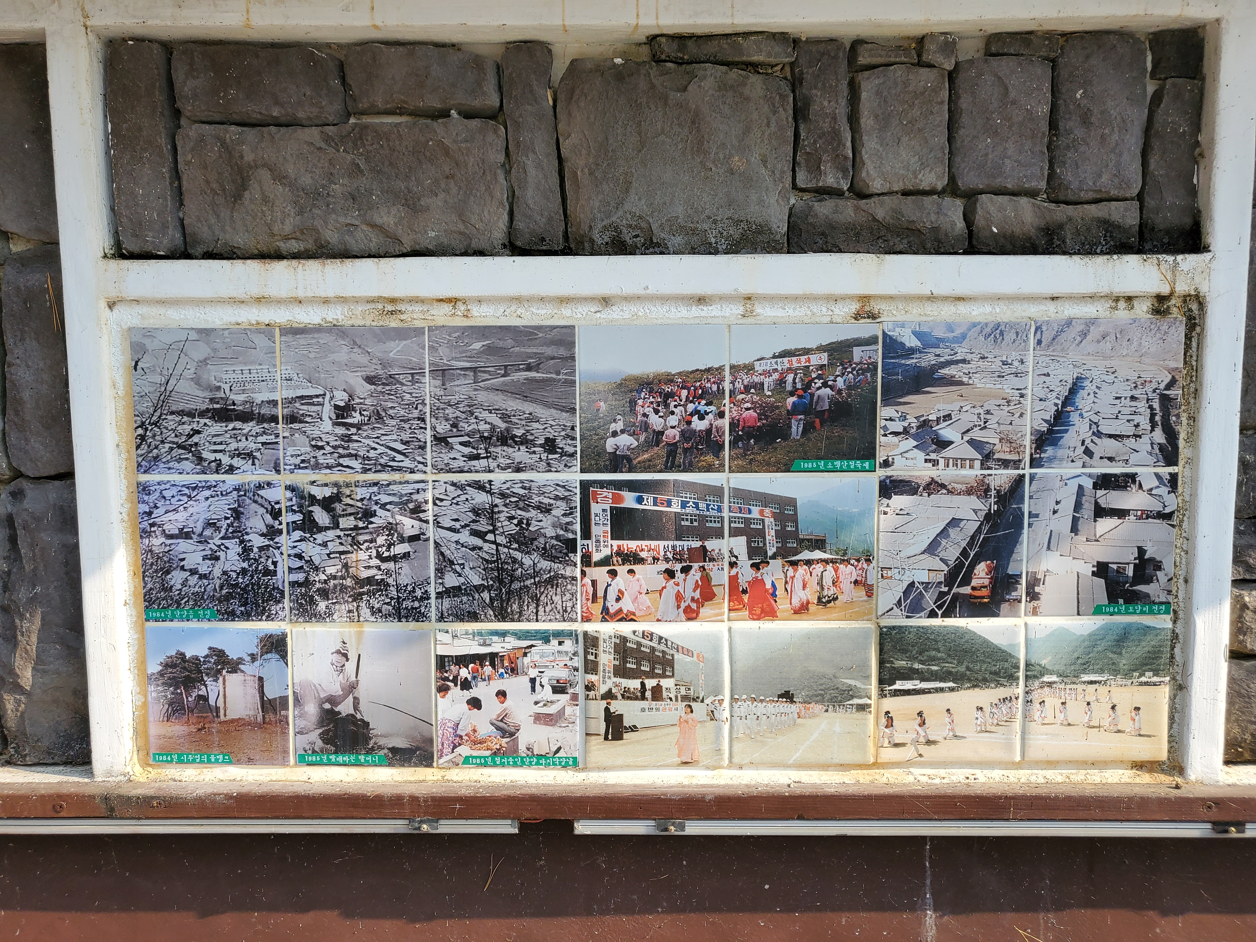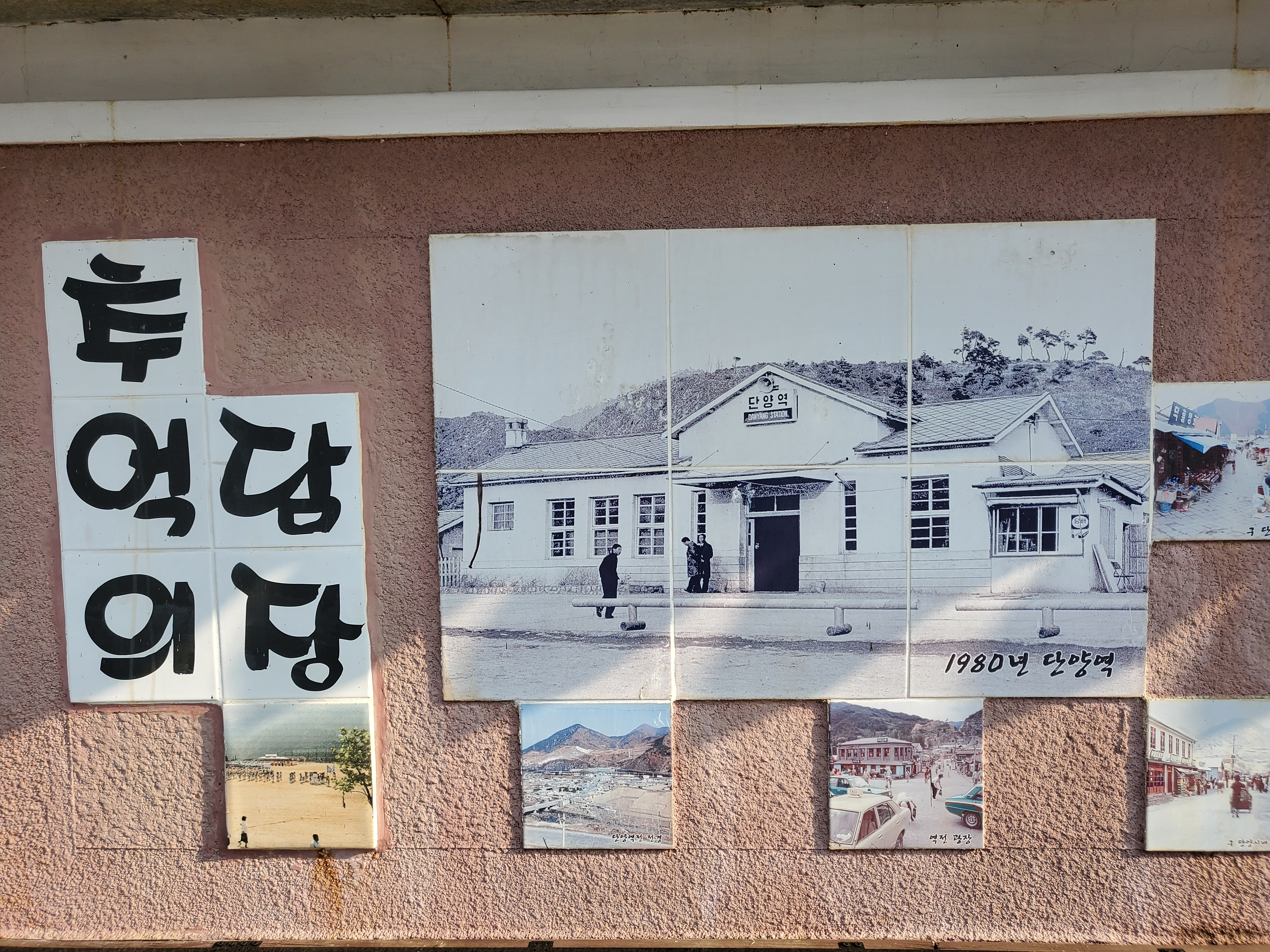 하상주차장 근처에는 추억의 담장이 있는데 1980년 단양역의 모습, 1984년 새마을버스 전수식이나 전국노래자랑, 1985년 우화교 폭파장면, 소백산 철쭉제 등의 사진이 게시되어 있어서 신기했다. 이렇게나 많이 변했다니...