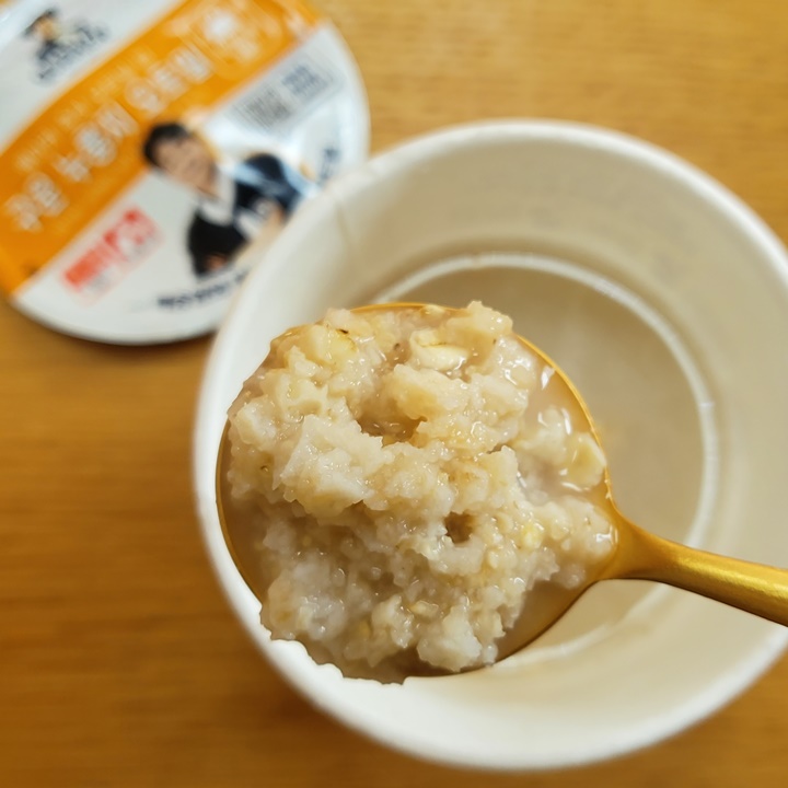 누룽지맛 오트밀은 물을 조금 더 넣고, 4분 이상 뒀다가 먹었다. 구수하고 한층 더 부드러워 술술 넘어간다. 개인적으로 퀘이커 오트밀 컵 2종 중에서 덜 짜고 구수한 누룽지맛이 먹기 편했다. 반찬을 곁들인다면 한 끼 식사로도 손색이 없을 것 같지만, 양이 아주 많은 편은 아니라 간단한 아침식사용, 간식, 야식(?) 정도로는 훌륭한 맛과 가격이라고 생각한다.