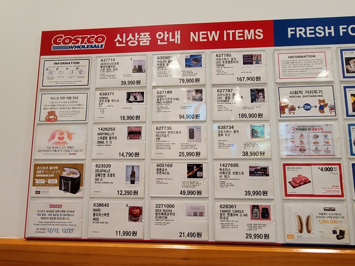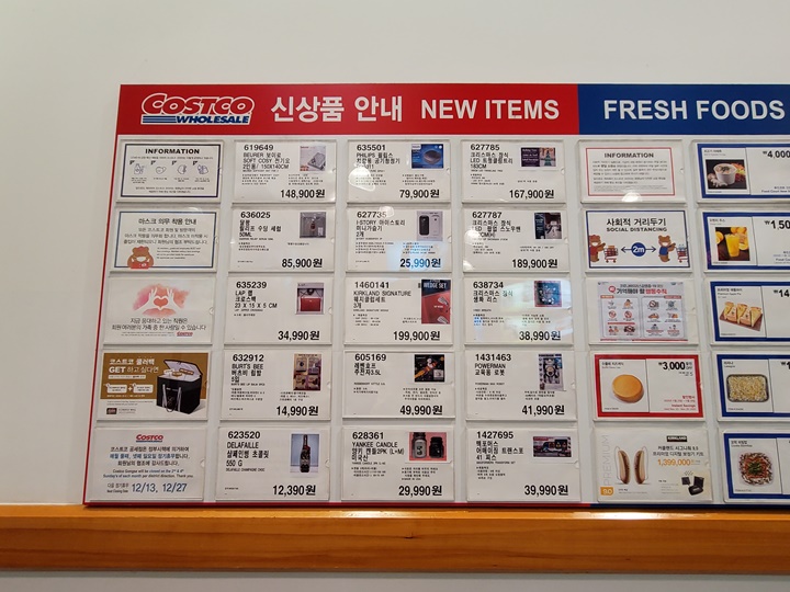 11월 28일 코스트코 입장하기 전에 찍어본 신상품 안내와 새로운 먹거리들. 꼬막비빔밥이랑 애플파이 같은 먹거리 말고는 딱히 눈에 들어오는 제품은 없었다.
