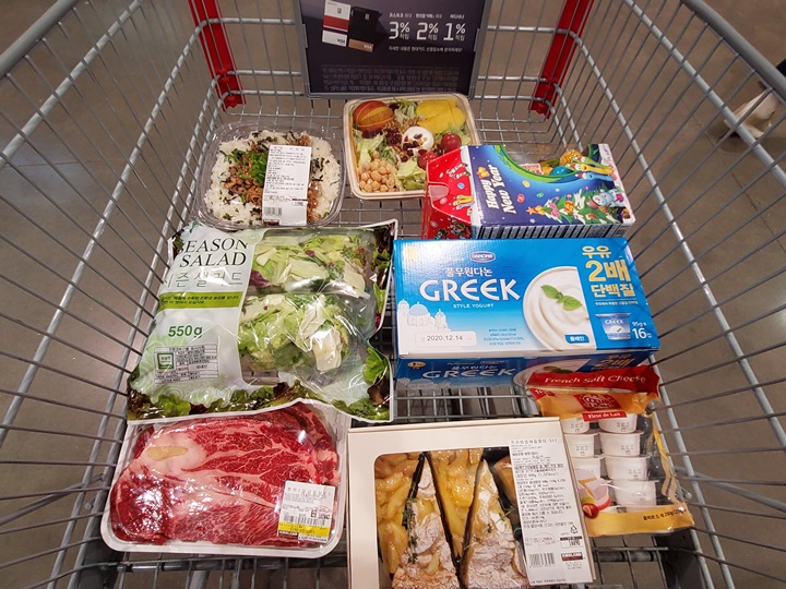 며칠 전이랑 동일한 것도 있고, 아닌 것도 있지만... 딱히 구매욕을 자극하는 제품은 없었다. 이런 생각을 하며 매장 안으로 들어가도 나올 때는 카트 한가득 채워 나오게 되지만 ㅎㅎㅎ