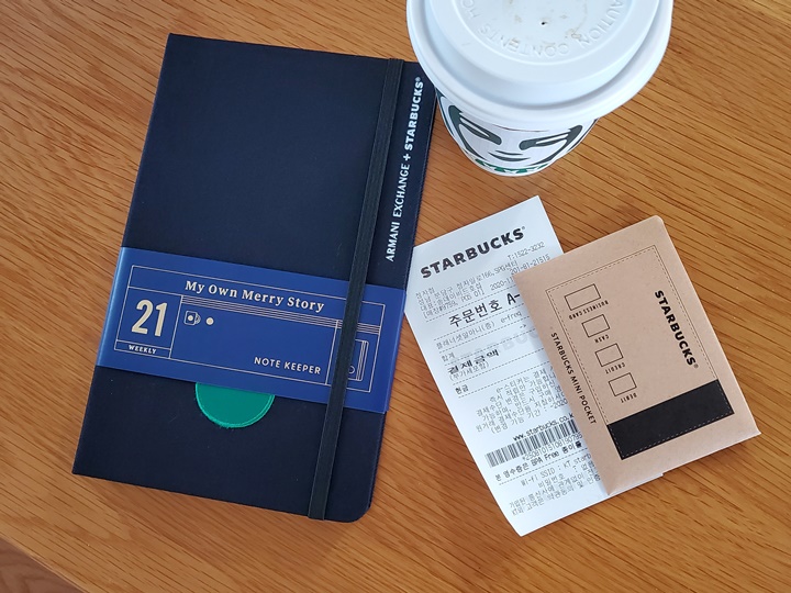 11월 중순께 프리퀀시 한 판 다모으고 바로 바꿔 온 것은 아르마니 노트 키퍼였다. 스탠딩 스케줄러에는 스타벅스 미니 계산기가 함께 제공되고, 핸디 스케줄러, 루틴 다이어리, 노트 키퍼 플래너 선택 시 스타벅스 미니 포켓을 함께 받을 수 있다.