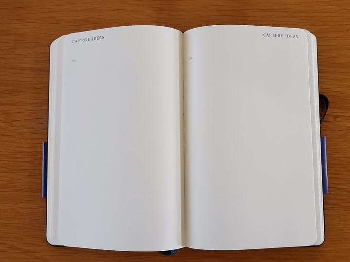 좋은 생각과 아이디어를 담아둘 수 있는 플래너로 내지 구성이 마음에 들고, 디자인도 예쁘고, 판매용 없이 증정용만 있는 제품이라 선택했다. 표지 소재 특성상 물이 빠지거나 이염이 있을 수 있고, 먼지가 잘 붙는 재질이라는 단점이 있기는 하지만~