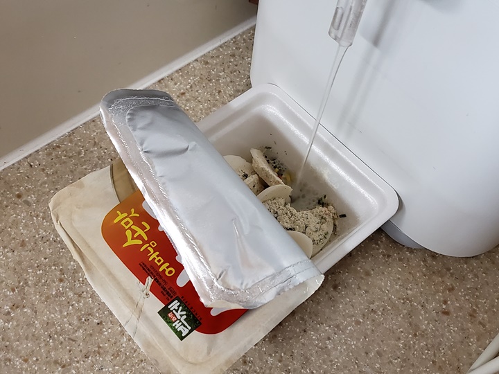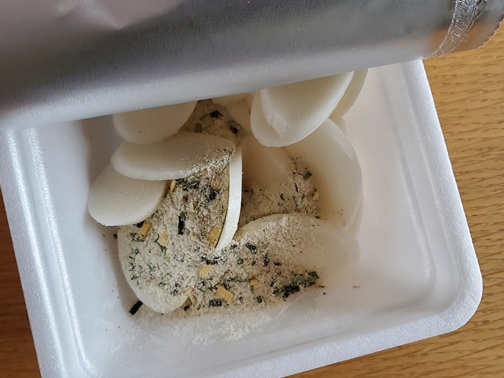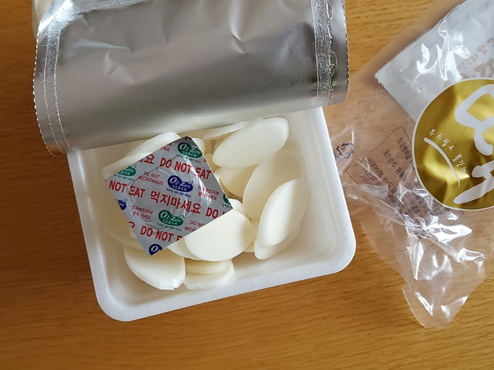 1. 포장된 떡과 스프를 개봉하여 용기에 담는다.
