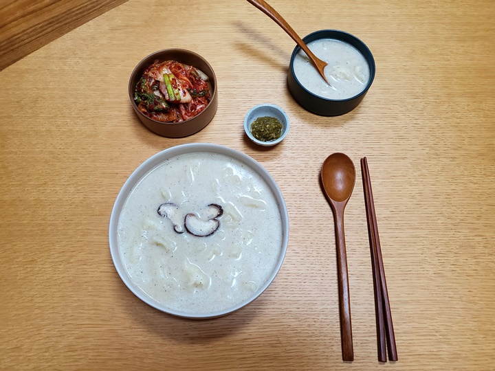 겉절이 아주 맛있고, 겉절이와 궁합 좋은 들깨 수제비. 밀키트만으로도 집에서 이렇게 맛있는 들깨수제비를 금방 끓여낼 수 있다니 신기했다. 들깨가루 말고 쌀가루도 같이 넣어서 묽은 점도를 유지하는 모양이다. 고소하고, 얇게 떼어 넣은 반죽은 쫄깃하다.