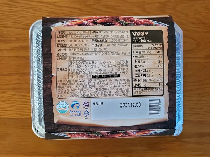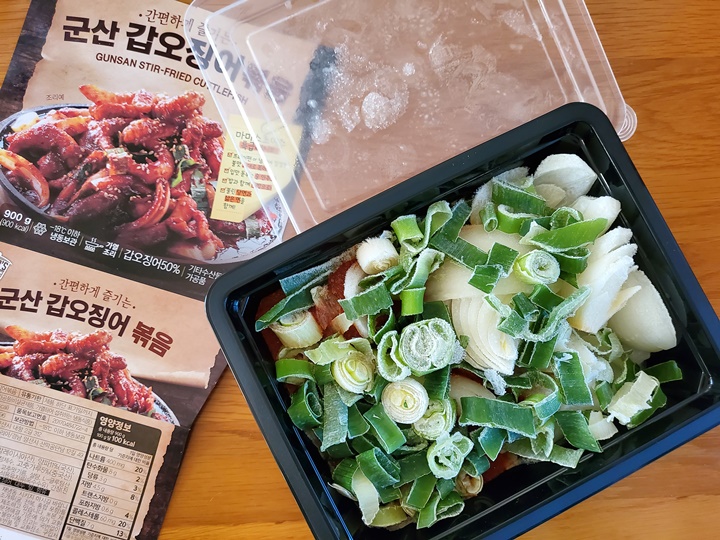 총 900g / 900kcal이며 말레이시아산 갑오징어가 50% 들어갔다. 냉동식품으로 전자레인지에 돌려서 먹는 즉석식품이 더 편하기는 하지만, 가열조리해서 먹는 코스트코 냉동식품 만족도가 높아서 구입해본 것이다. 남편이 차돌된장찌개밥을 매우 좋아해서 냉동실에 떨어지지 않게 챙겨두는데, 갑오징어볶음도 이번에 먹어보고 괜찮으면 술안주나 덮밥용으로 챙겨둘까 싶은 마음이었다.