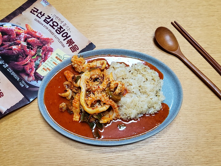 조리가 간편하고 내용물이 충실한 편이라 가격이 아깝지는 않다. 하지만 매우 짠 편이기 때문에 이렇게 덮밥으로 먹기보다는 갑오징어볶음 따로, 밥 따로 먹거나 술안주로 먹는 게 훨씬 나을 것 같다. 코스트코 냉동식품 추천 군산 갑오징어볶음 솔직후기 끝 :D