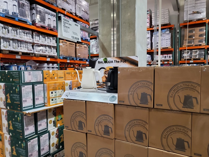 지난번 방문 때 사려고 했는데 그 땐 아무리 찾아봐도 없었던 발뮤다 드립포트, 겨울이니까 드립커피 땡기던 차에 이번에는 있길래 구입했다. 발뮤다 더토스터와 발뮤다 더팟은 코스트코 온라인몰에서 판매하지 않기 때문에 직접 매장에서 사야했다. 색상은 화이트, 블랙 2종류 판매중.