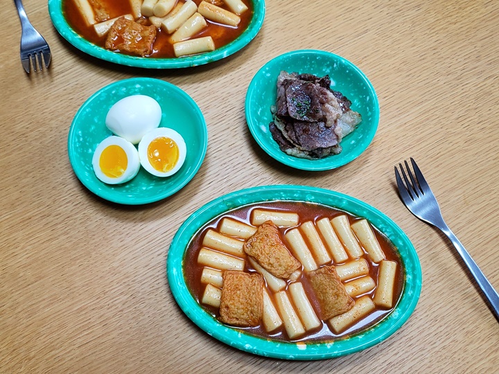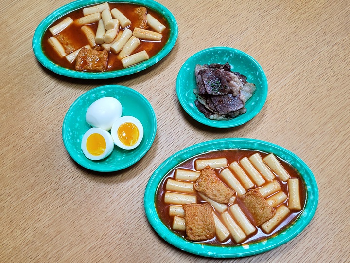 마트에서 맥주사고 사은품으로 받았떤 분식집 접시 꺼내서 1인분씩 담아보았다. 미미네 차돌 떡볶이가 3인분인데, 이 떡볶이 접시에 담으면 딱 3접시 나온다. 하지만 체감적으로는 3인분보다는 1인분으로 느껴진다. 1인분 3번 리필요 ㅎㅎㅎ