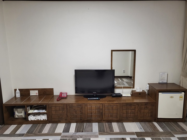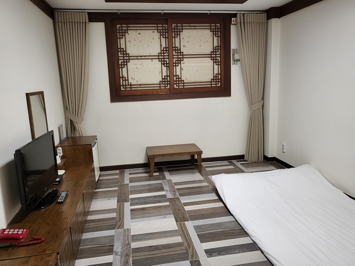 이불 한 채는 바닥에 깔려 있고, 여분의 이불과 베개는 객실문 바로 옆 쪽문(을 열면 옷장이다) 안에 들어있다. 바닥이 지글지글 끓어서 매우 더우므로 창문을 살짝 열어두고 자야 했다. 찜질방 온 것 같은 느낌도 들고ㅎㅎㅎ