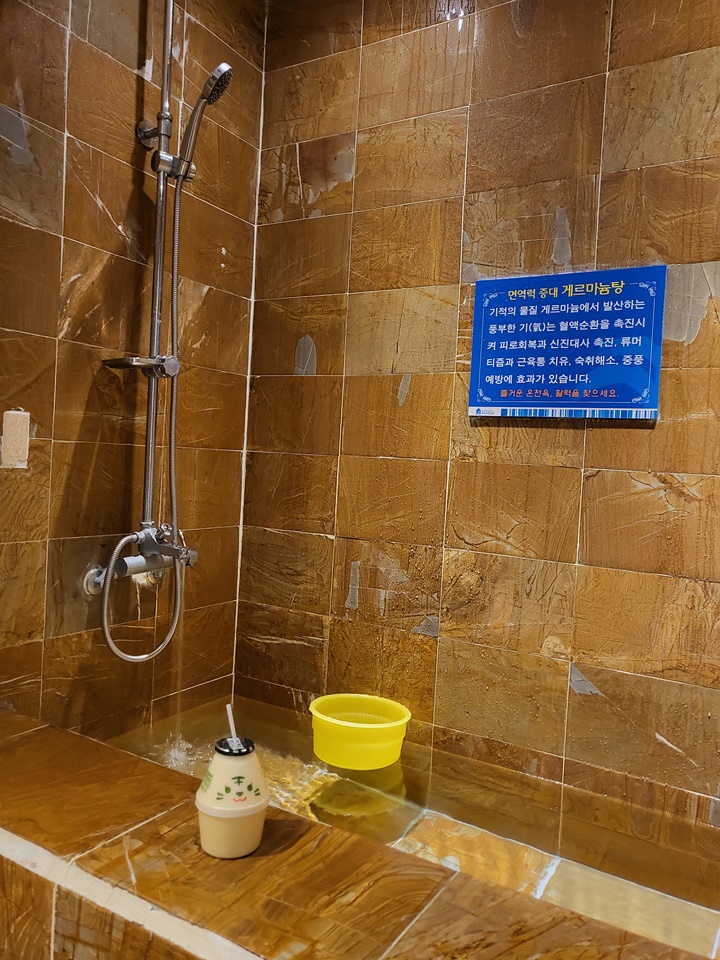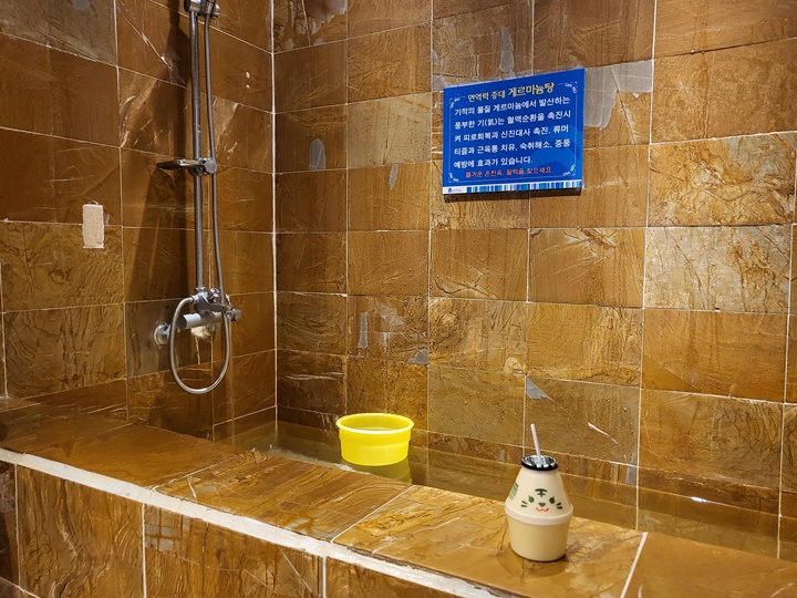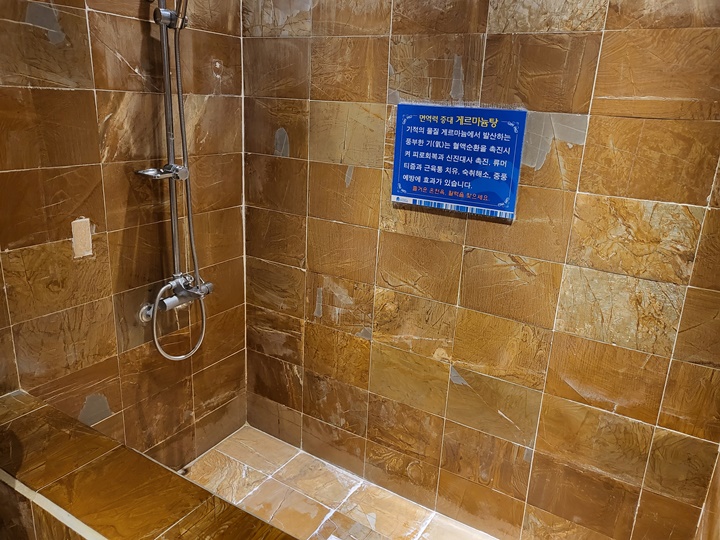 청도 용암온천 웰빙가족탕 (베니키아호텔 청도용암온천 한실 게르마늄실) 몇 해 전 화재 이후로 리모델링을 했다고 해서 가족탕 객실도 리모델링했을 거라고 기대했는데, 청소상태가 양호하기는 했지만 전반적으로 연식이 느껴지는 분위기였다.