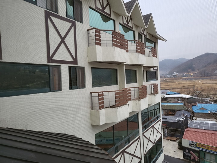 청도용암온천 가족탕 513호에서 바라본 모습, 창문을 밖으로 여자탈의실이 보인다. 대온천장 이용 시 창문 쪽 라커 배정되었다면, 창문 열려있을 때는 객실에서 보일 수도 있음 주의;;;
